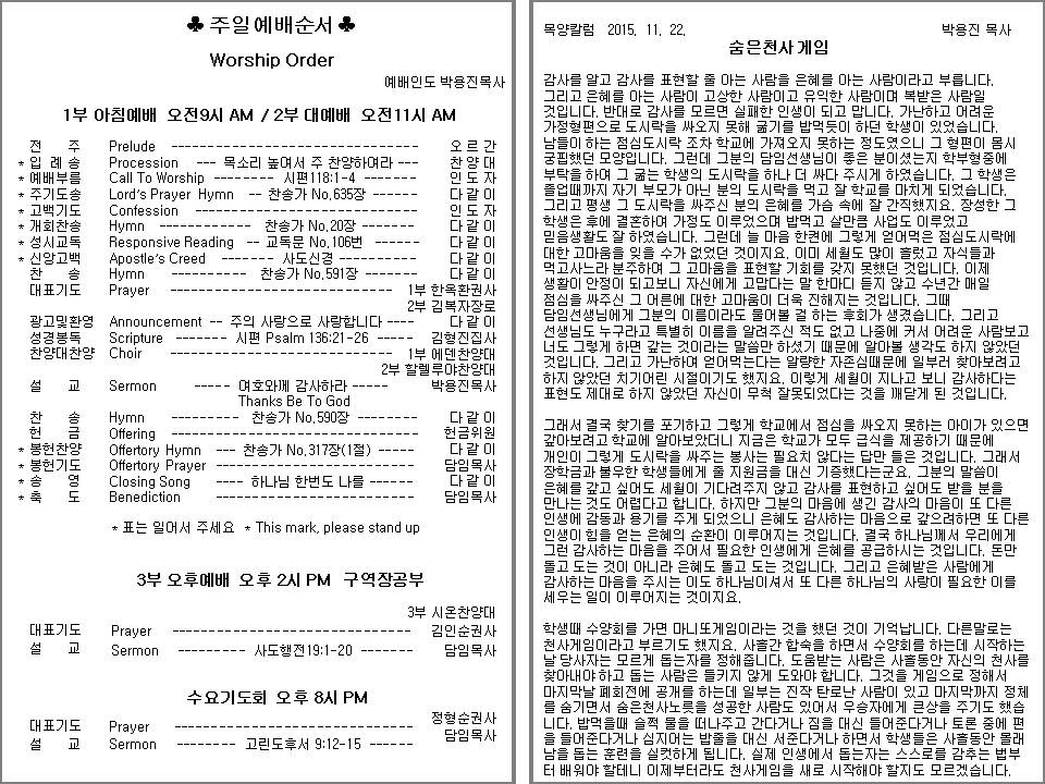 | 주일영어예배 오후12:30