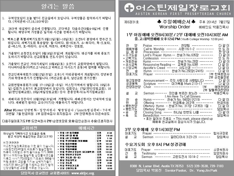Copyright ⓒ www.akfpc.org Austin Korean First Presbyterian Church All rights reserved.